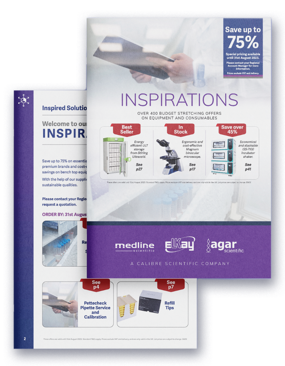 We are pleased to announce the 2023 edition of INSPIRATIONS. Created in collaboration with other Calibre Scientific brands, you’ll find over 400 great offers for your laboratory.