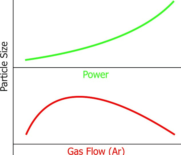 Figure 1: General trend for nanoparticle size with increasing magnetron power or gas flow.
