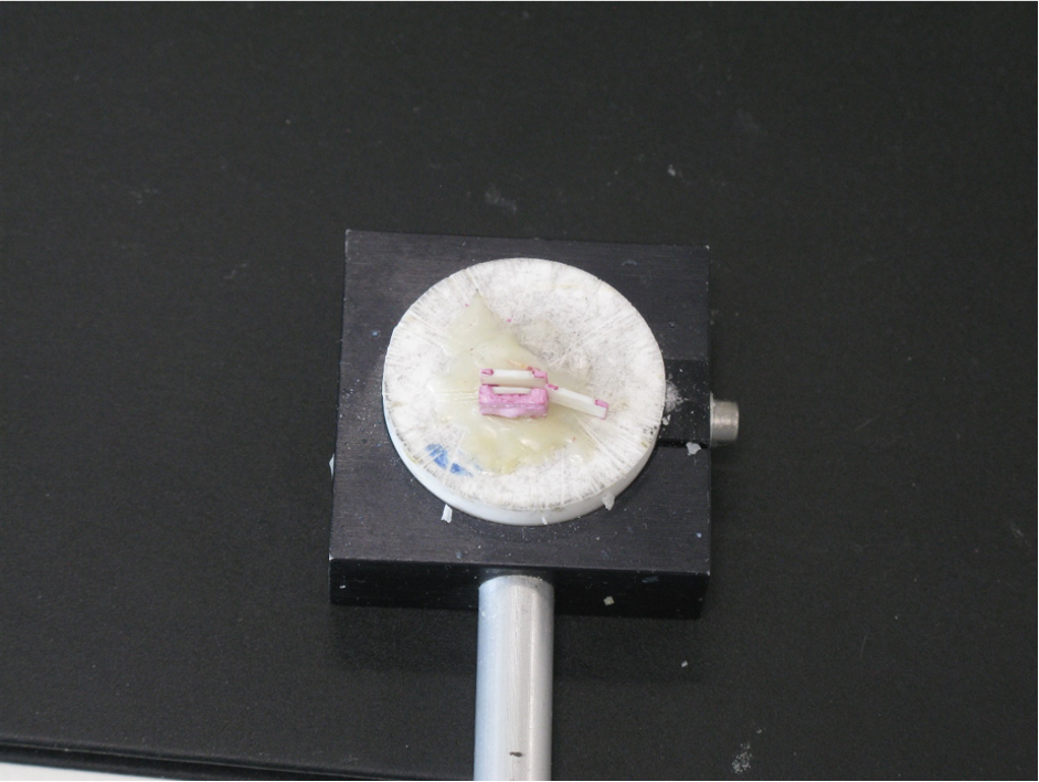 Figure 2: The position of the enamel block on the wire saw.