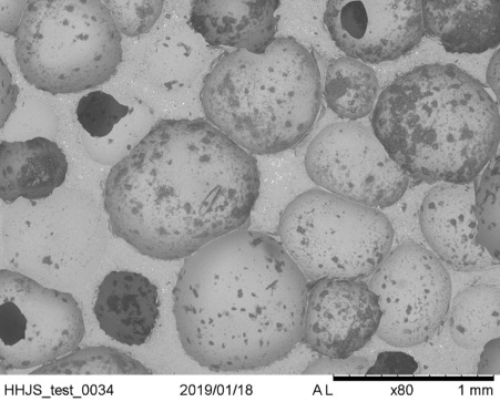 The standard approach to producing these SEM images involved setting the sample in epoxy resin and manually polishing it for several hours. The wire saw reduces this preparation time drastically as the sample face is polished by the cutting, leaving no visible scratches. The sample in the image was placed in the SEM directly after cutting, with no other preparation required. The wire saw also has the ability to cut thin sections in the micrometer range and reduces precious sample waste.”